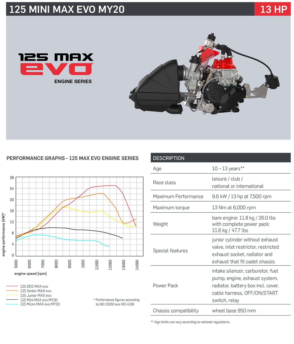 13 马力,对于初学者和休闲卡丁车手来说,这是一款出色的发动机。对于有一定卡丁车比赛经验的孩子来说,这也是 125 Micro MAX 的合理升级版。